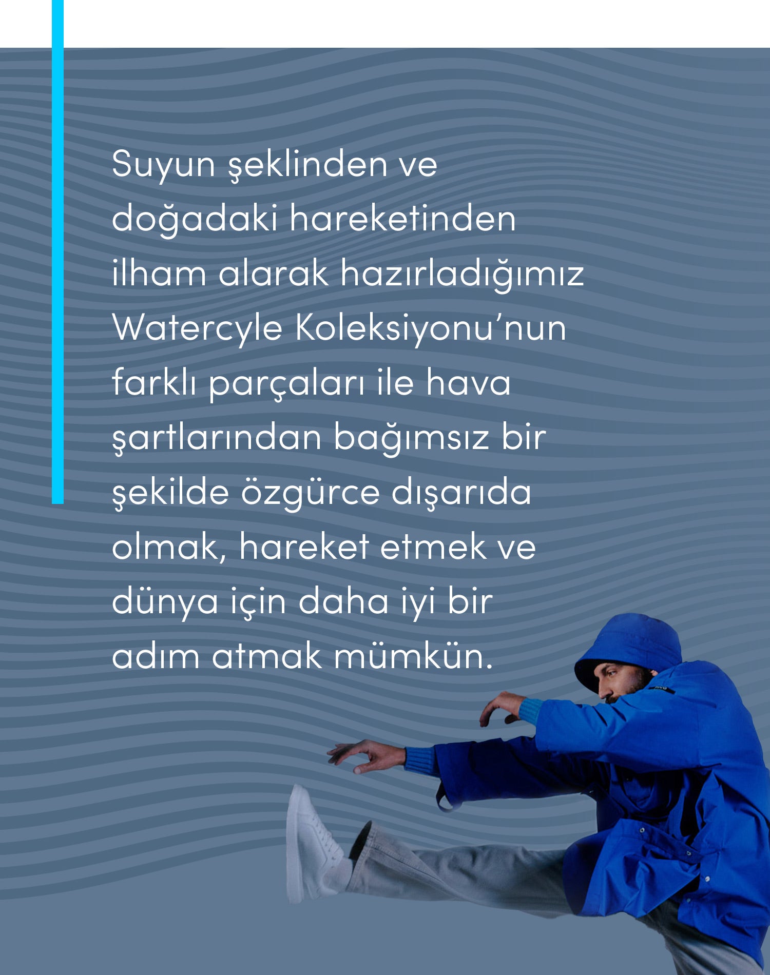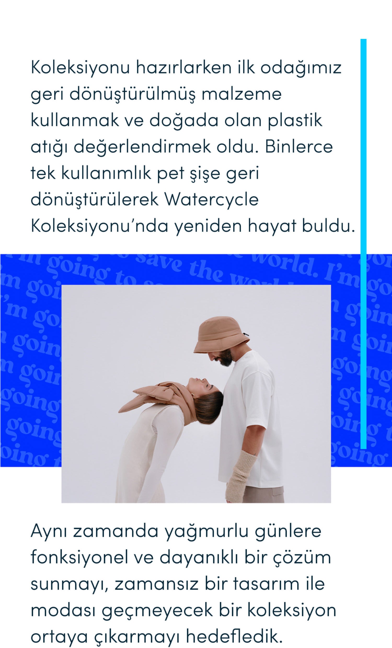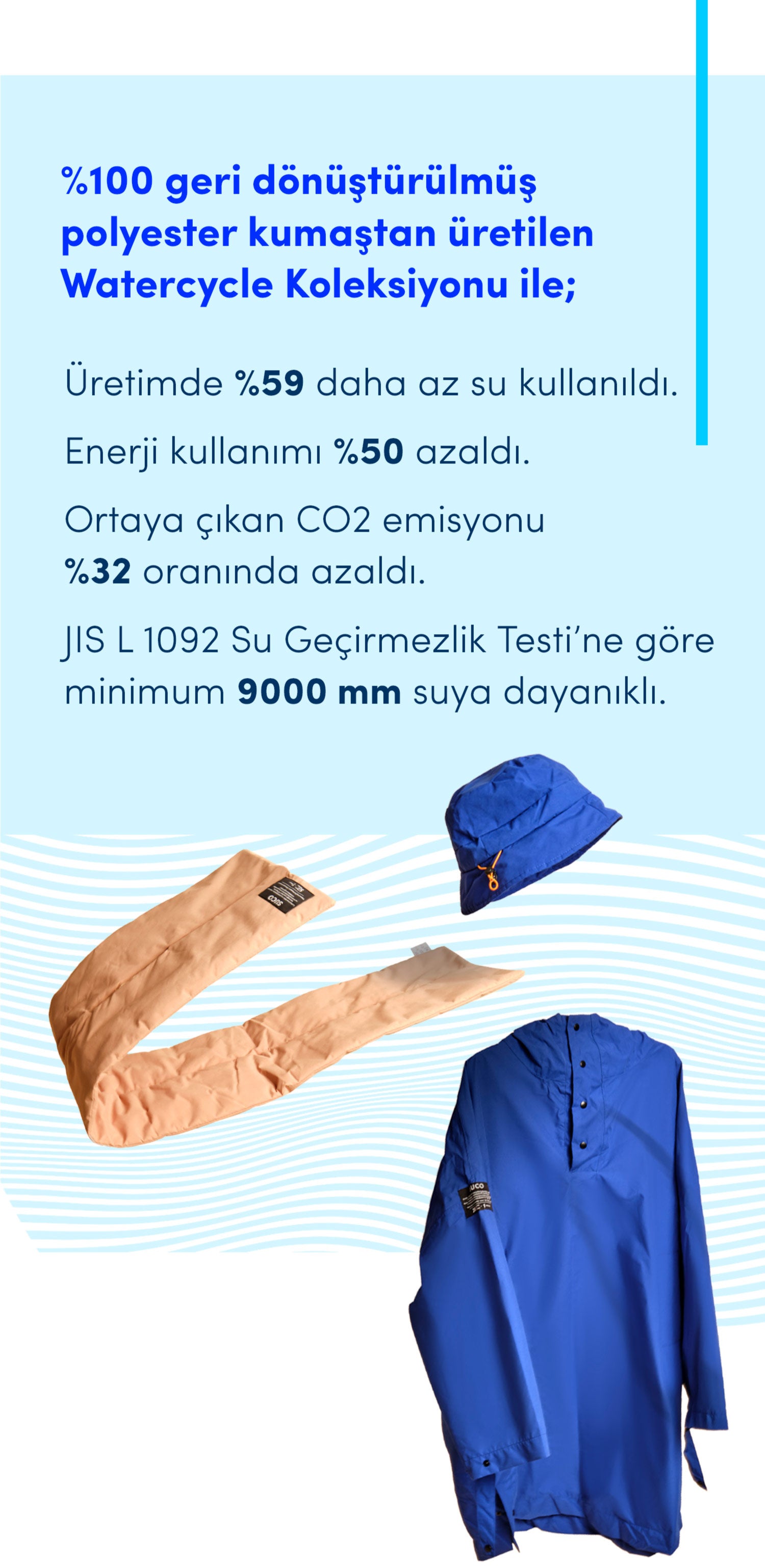 Geri dönüştürülmüş PET şişelerden ürettiğimiz Watercycle Koleksiyonumuzla sürdürülebilir moda, zamansız bir dokunuşla...